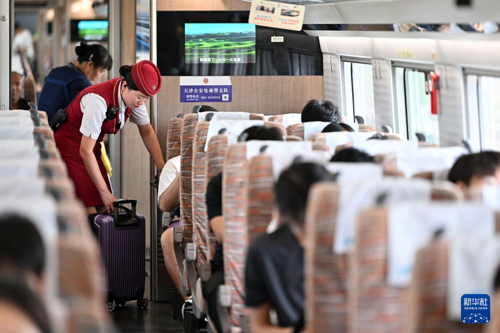 暑运以来,津兴城际铁路实行高峰运行图,日增加10趟天津西站至大兴机场站的列车,旅客运输量较平日实现翻倍增长,部分车次旅客最高上座率达到95%以上。