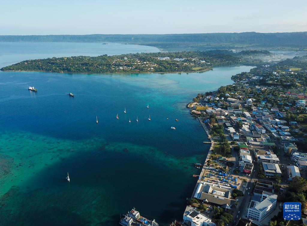 这是6月29日拍摄的瓦努阿图首都维拉港风光(无人机照片)。