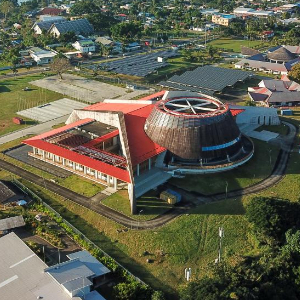 这是6月29日在瓦努阿图首都维拉港拍摄的瓦努阿图国家会议中心(无人机照片)。