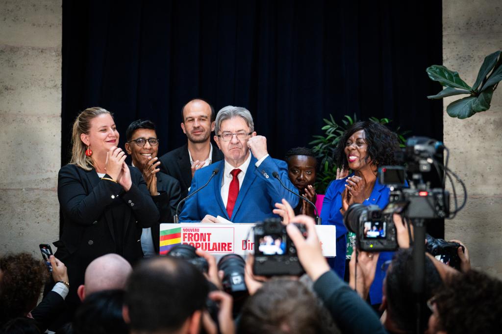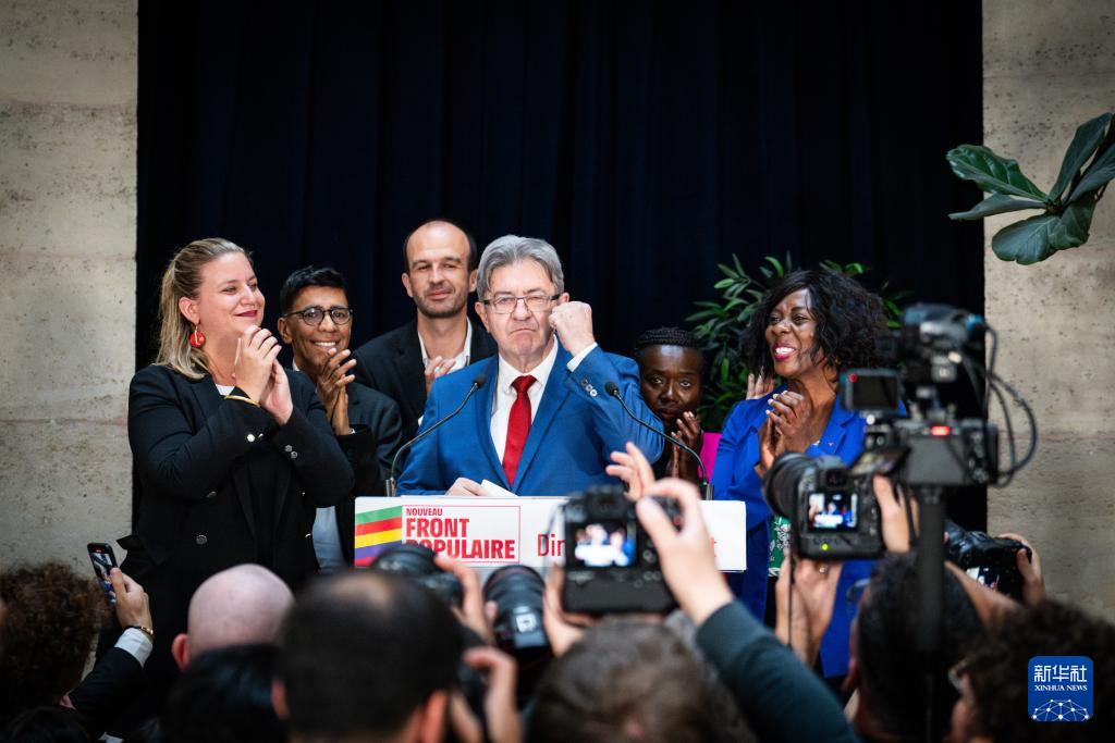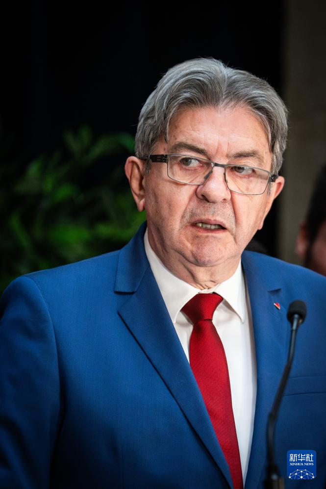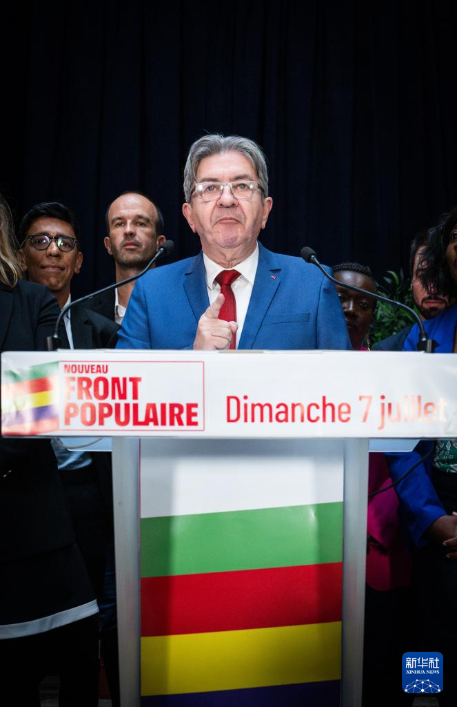 7月7日,法国极左翼政党“不屈法国”领导人梅朗雄出席在巴黎举行的选后集会。
