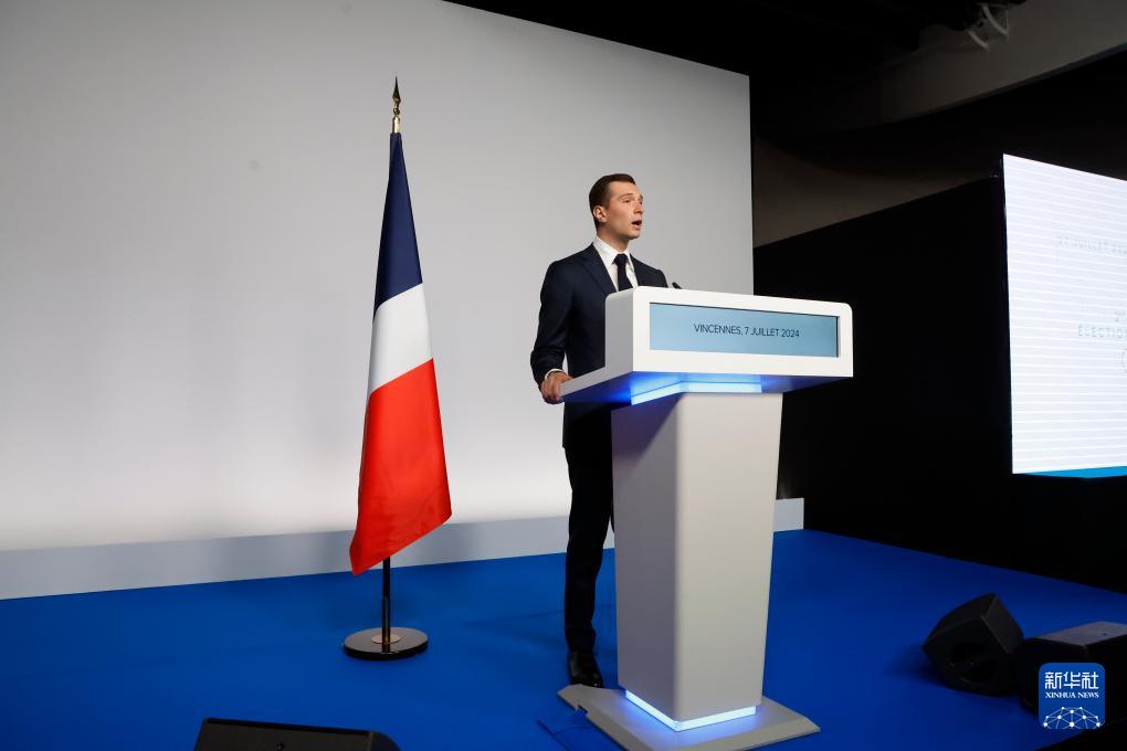 7月7日,法国极右翼政党国民联盟主席若尔当·巴尔代拉出席在巴黎举行的选后集会。