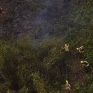 7月7日,消防员在巴西南马托格罗索州潘塔纳尔湿地参加灭火行动。