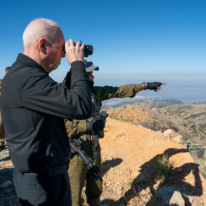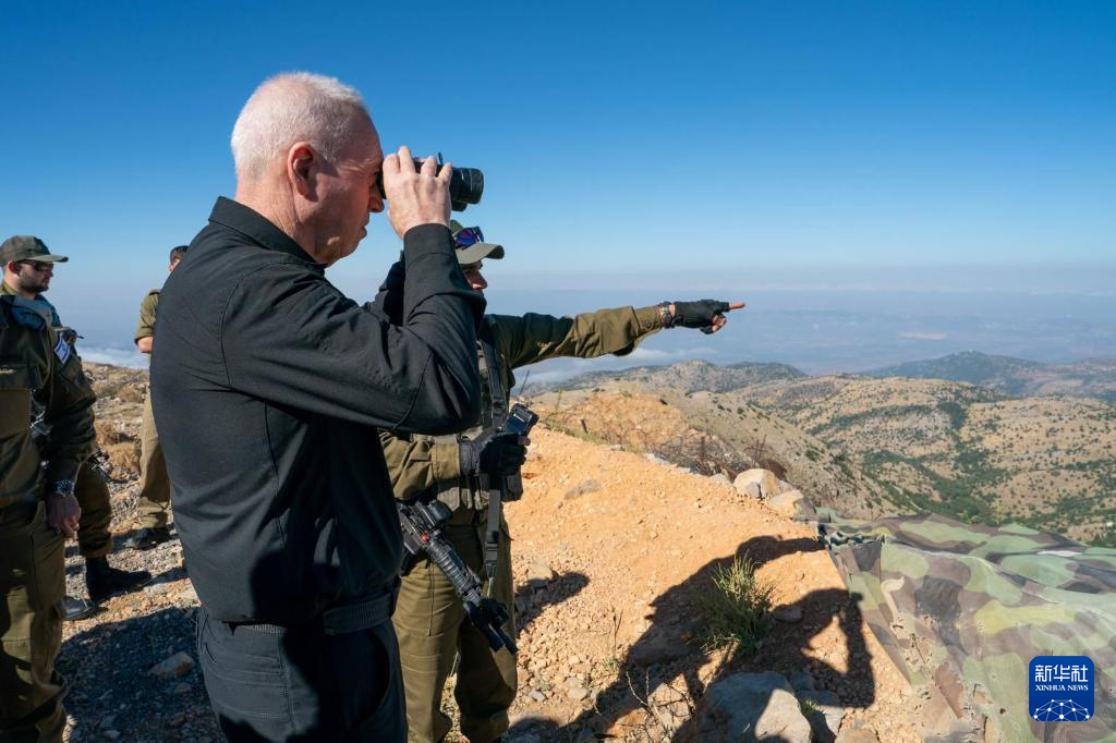 7月7日,以色列国防部长加兰特(前)在以色列控制的戈兰高地视察以军部队。