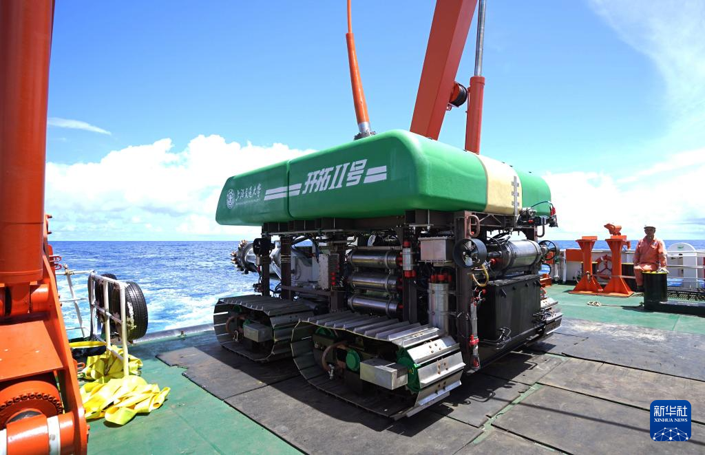 上海交通大学自主研制的深海重载作业采矿车工程样机“开拓二号”(6月20日摄)。