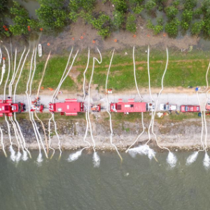 随着湖南华容县团洲垸洞庭湖大堤决口完成封堵,消防、应急等部门抢险人员抢抓时间在多个点位开始对团洲垸进行排涝作业。