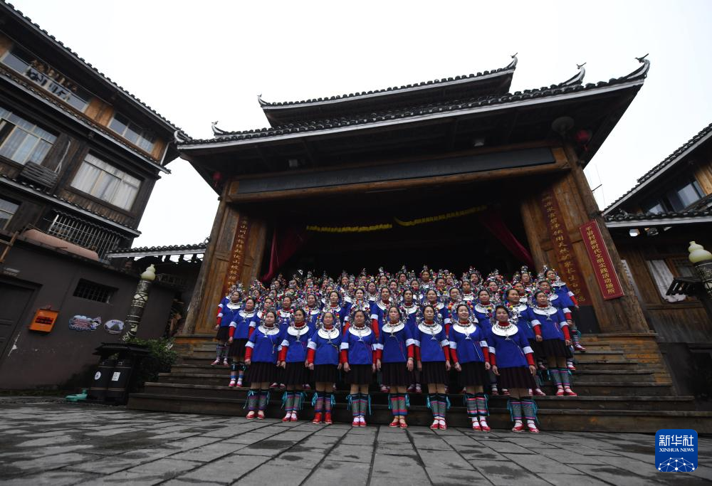 在广西柳州市三江侗族自治县林溪镇平岩村,村民在练习唱侗族大歌(1月28日摄)。