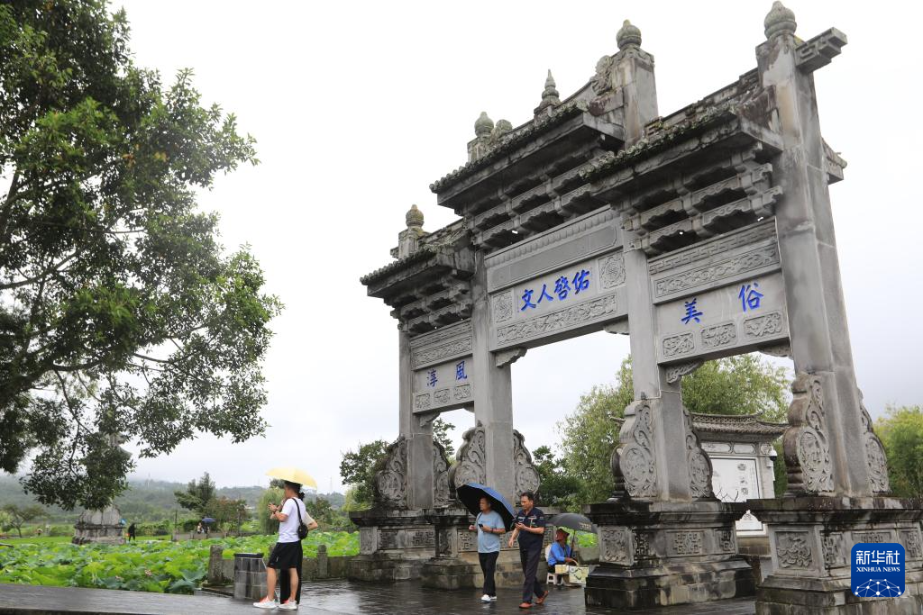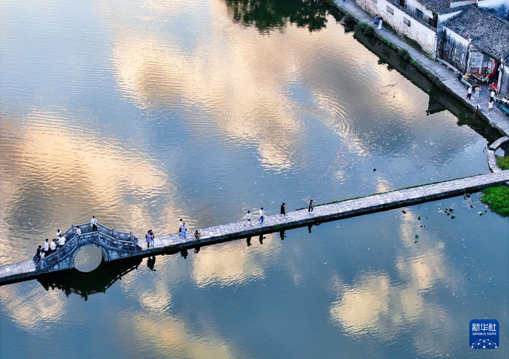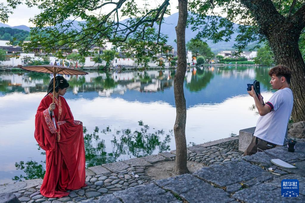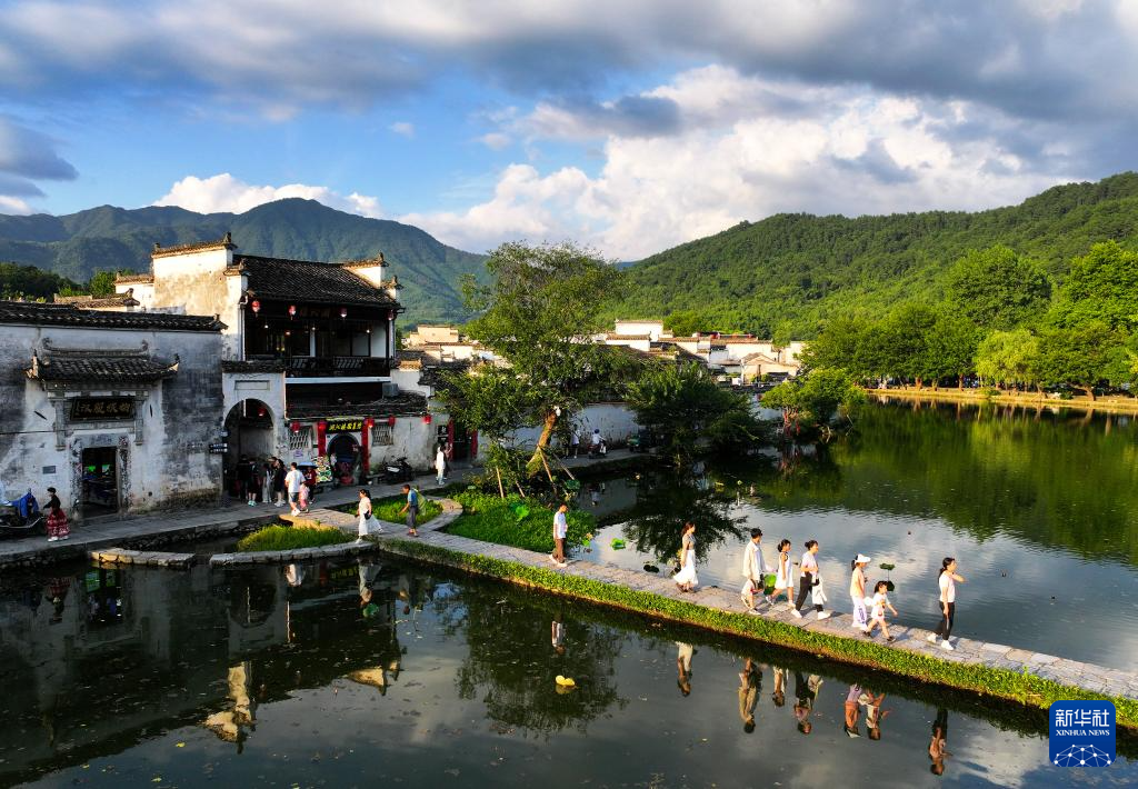 7月7日,游客在安徽省黄山市黟县宏村游玩。