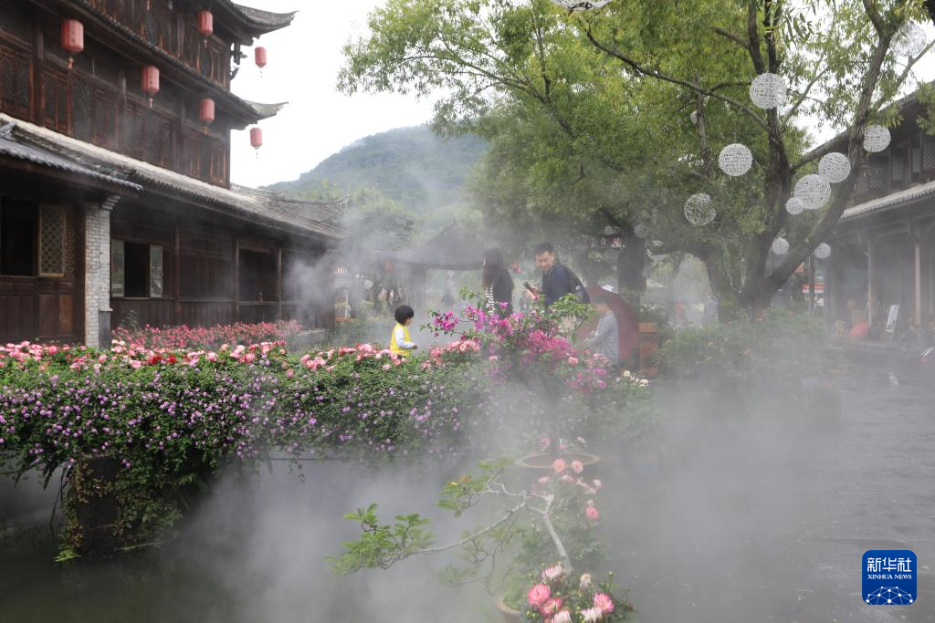 7月10日,游客在云南省腾冲市和顺镇游玩。