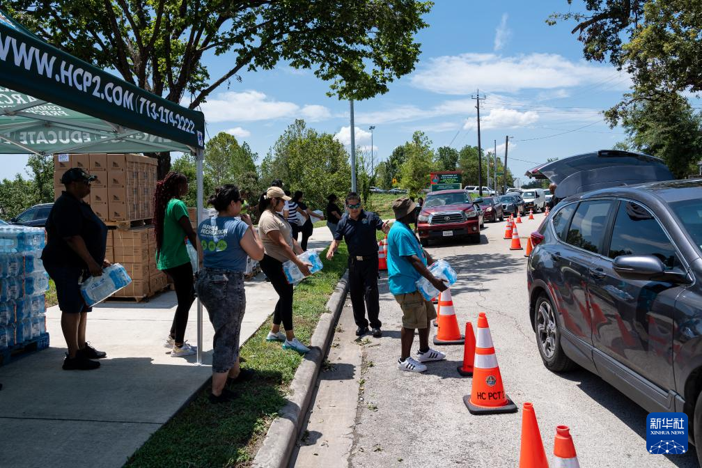 7月9日,在美国得克萨斯州休斯敦,民众领取饮用水。