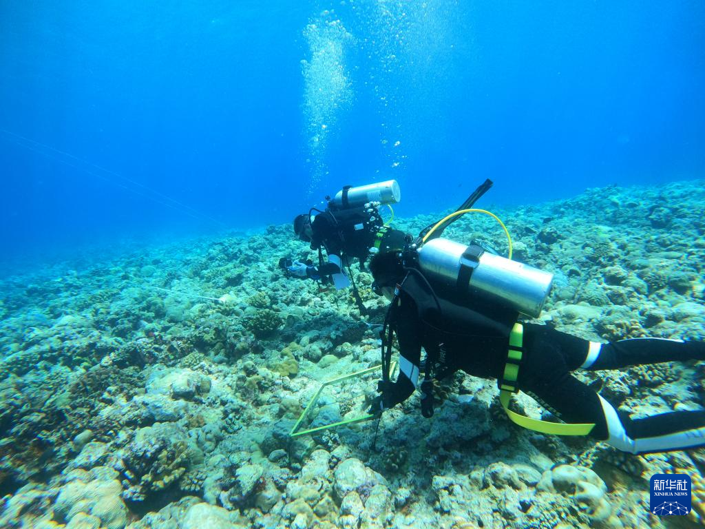 这是2024年黄岩岛海域生态环境状况调查的水下作业。