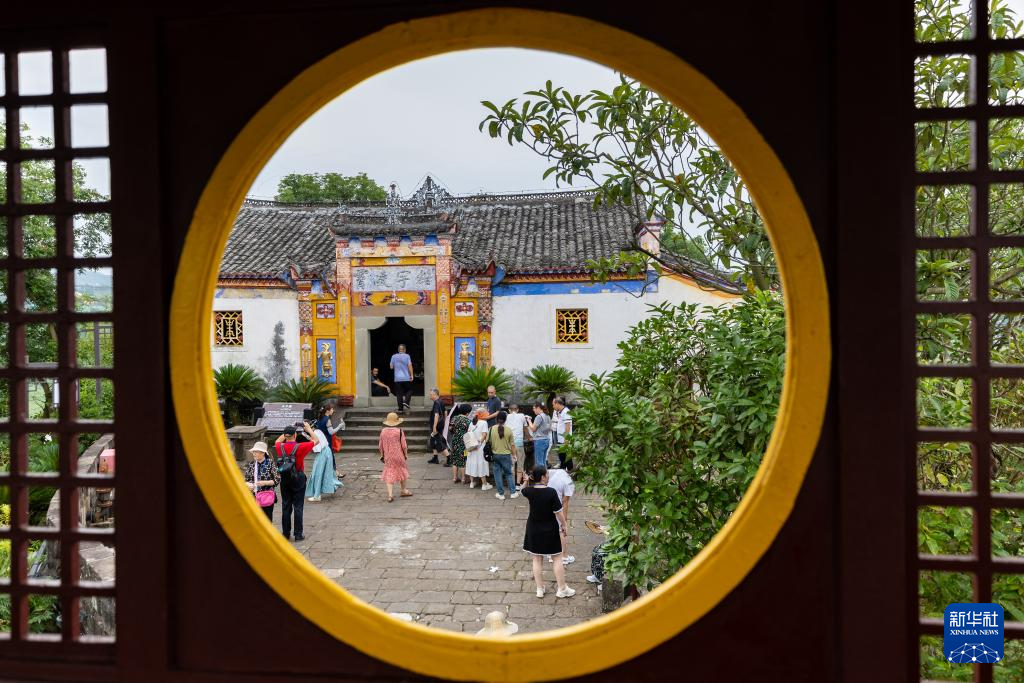 7月10日,游客在位于重庆市忠县的石宝寨参观游览。
