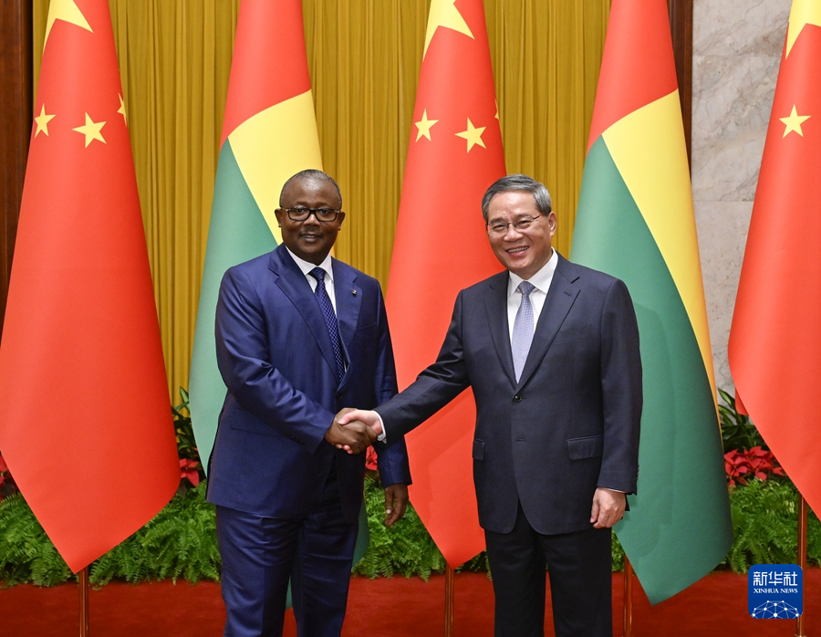 7月10日上午,国务院总理李强在北京人民大会堂会见来华进行国事访问的几内亚比绍总统恩巴洛。