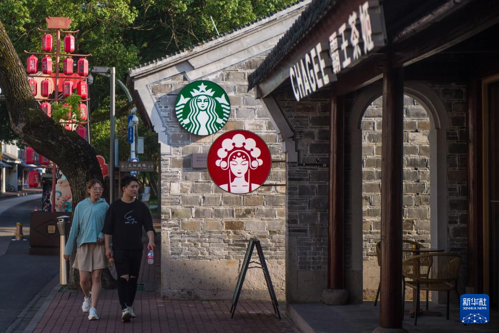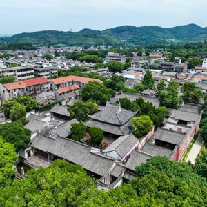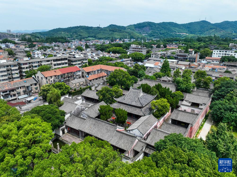 7月9日,游客在宁波慈城古县城内的周信芳戏剧艺术馆参观(无人机照片)。