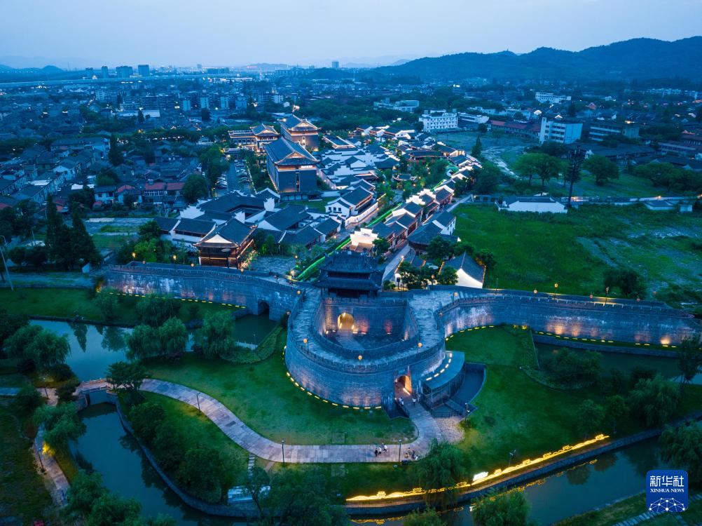 这是宁波慈城古县城大东门夜景(无人机照片,7月10日摄)。