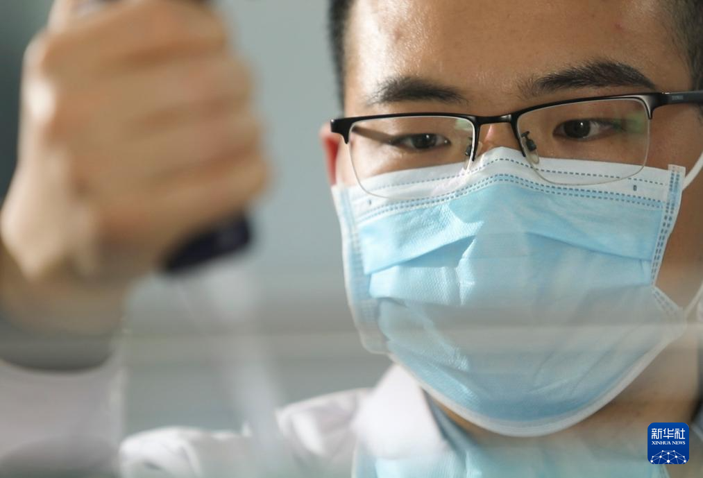 在重庆大学附属三峡医院分子病理中心实验室,印明柱教授团队成员在进行血样检测(6月20日摄)。