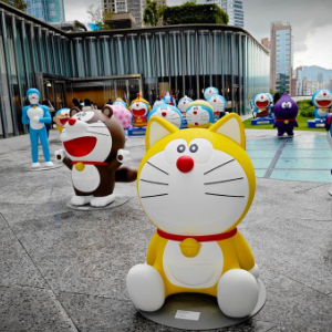 7月12日,在“哆啦A梦”主题展中,“空中乐园”部分展出36个“哆啦A梦”立体雕塑。
