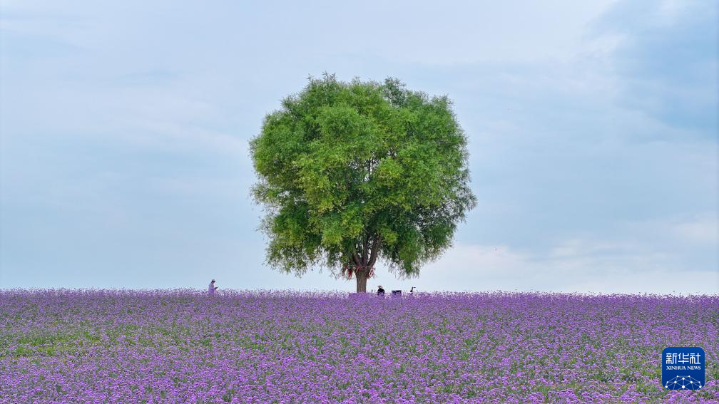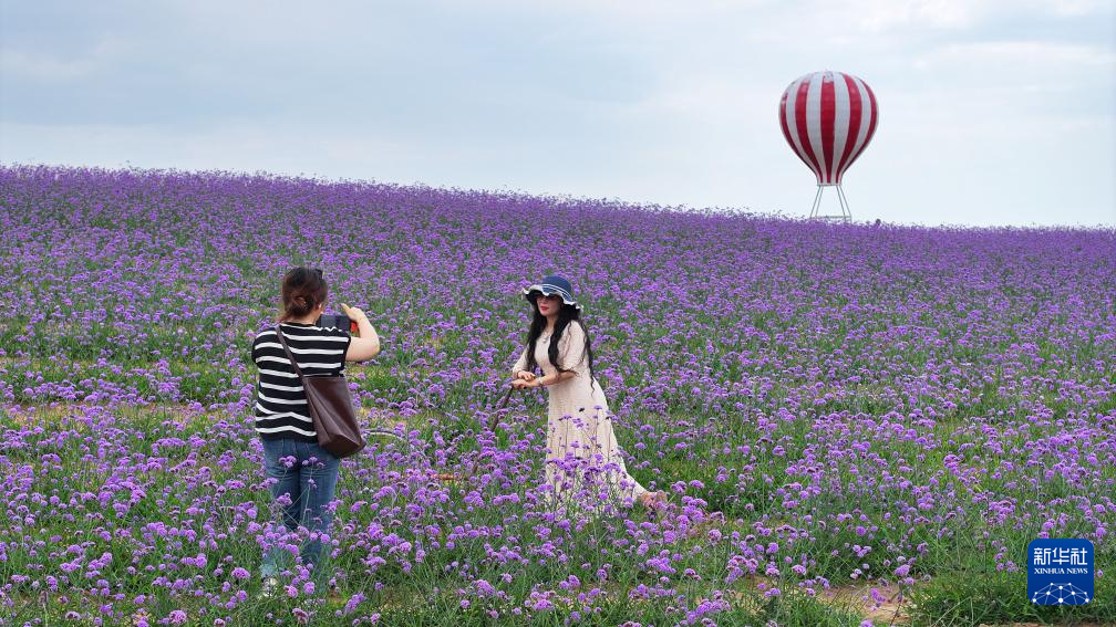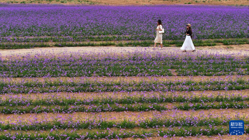 盛夏时节,地处毛乌素沙地边缘的宁夏薰衣草庄园内花卉竞相开放,迎来盛花期。