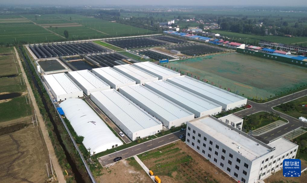 7月11日拍摄的位于山东省枣庄市峄城区古邵镇的一处高标准鱼苗育种场(无人机照片)。