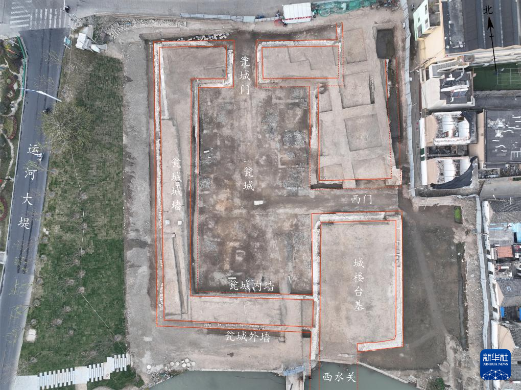 江苏淮安庆成门遗址发掘区航拍示意图。