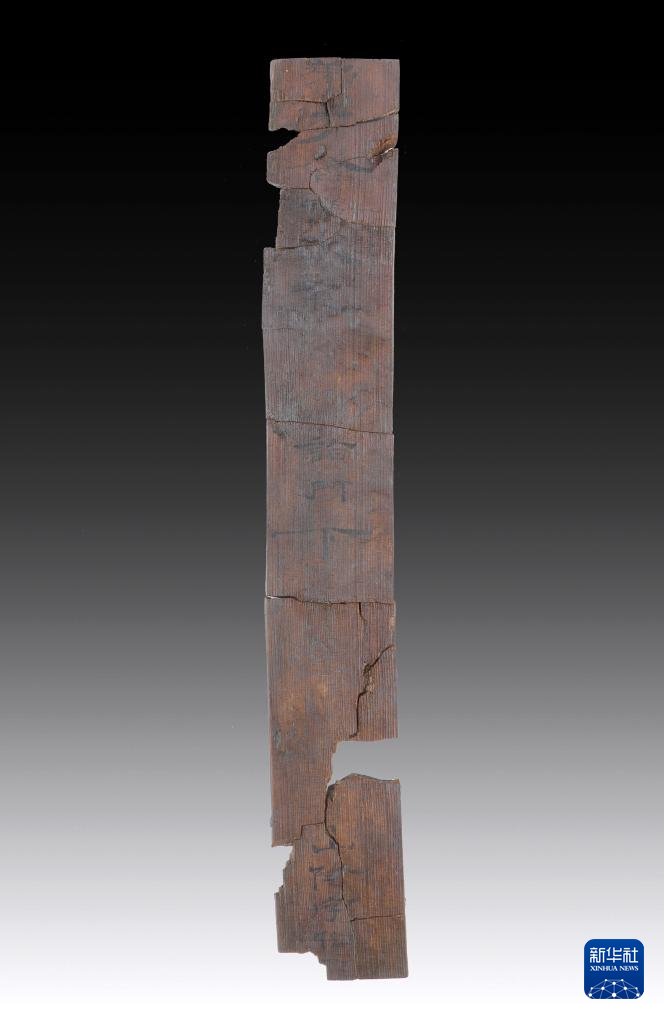 浙江绍兴稽中遗址出土的汉代墨书木刺(资料照片)。