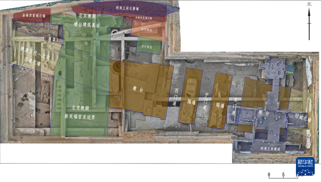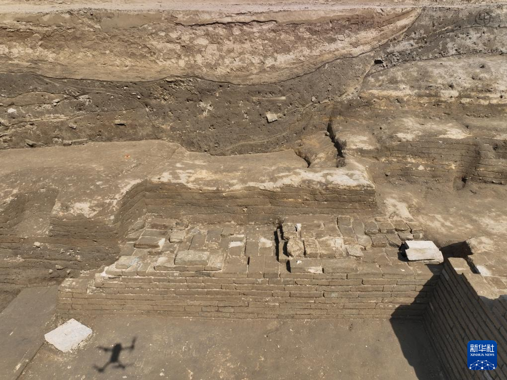 河南开封景龙门遗址北宋晚期楼台建筑西部夯土堆积及包砖(资料照片)。