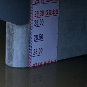 这是淮河王家坝水文站附近设置的水位标尺(7月13日摄)。