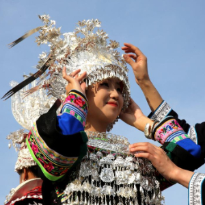 7月13日,少数民族群众着装准备参加贵州剑河仰阿莎文化节民族文化巡演。