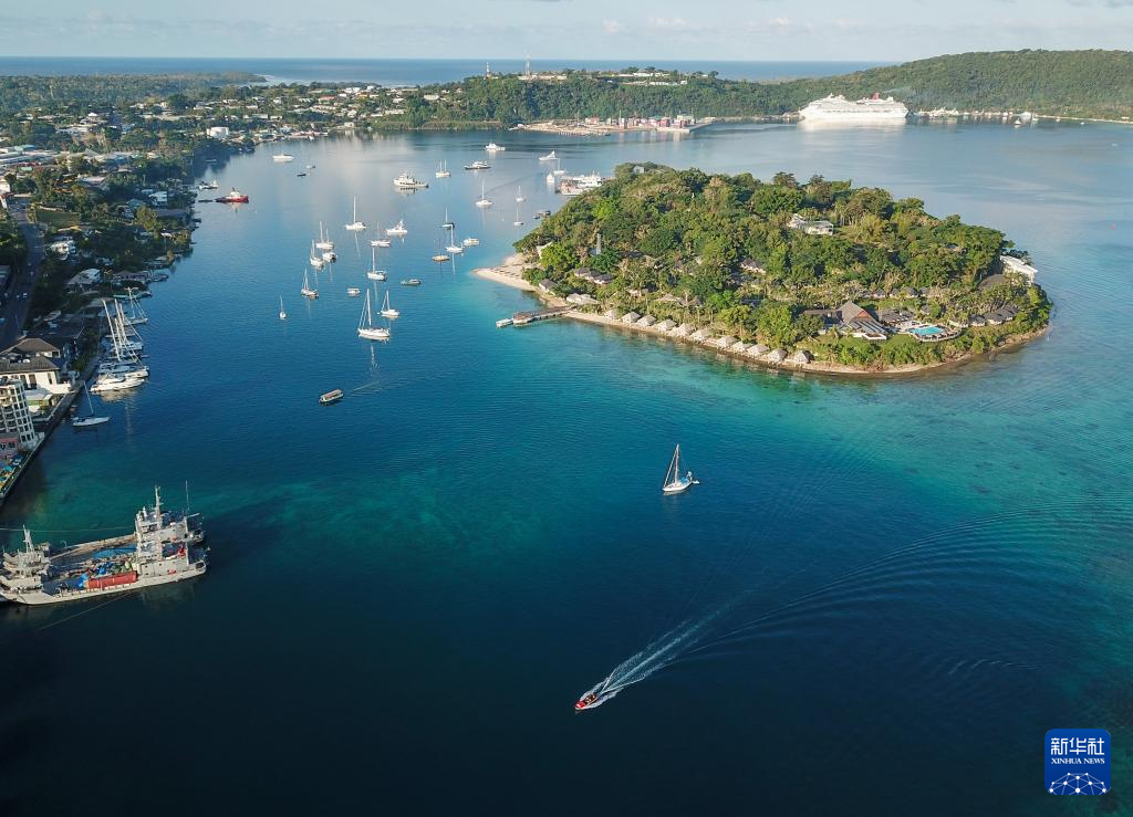 这是6月29日拍摄的瓦努阿图首都维拉港风光(无人机照片)。