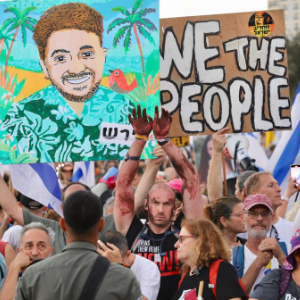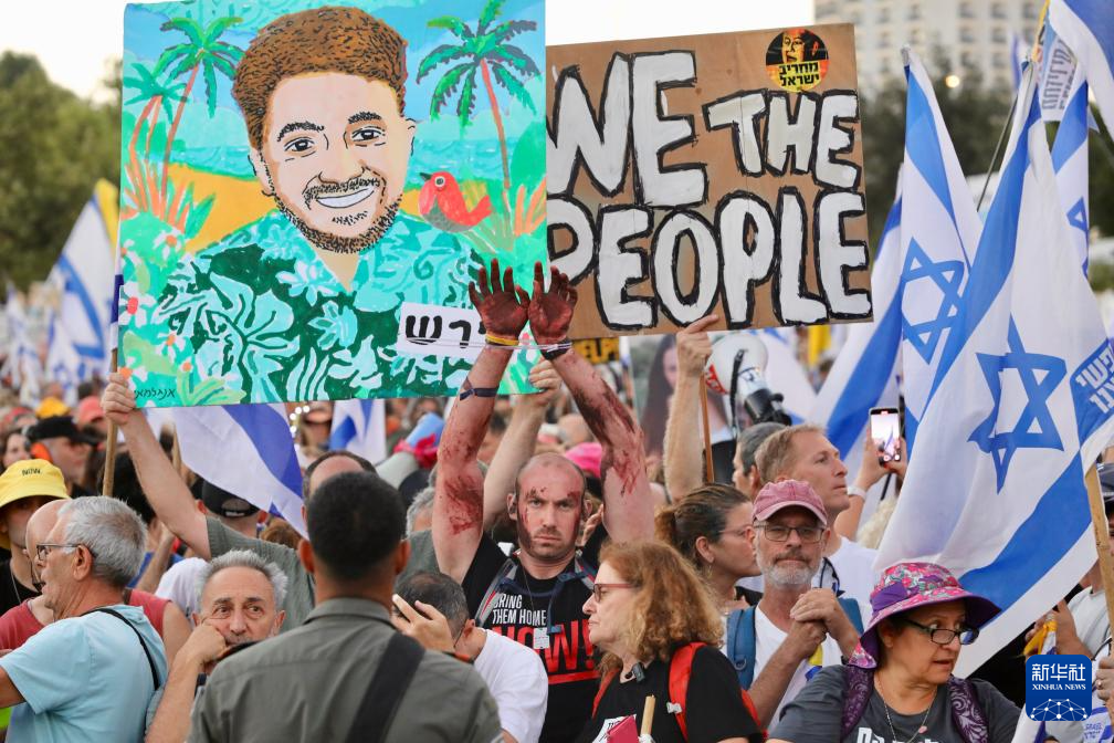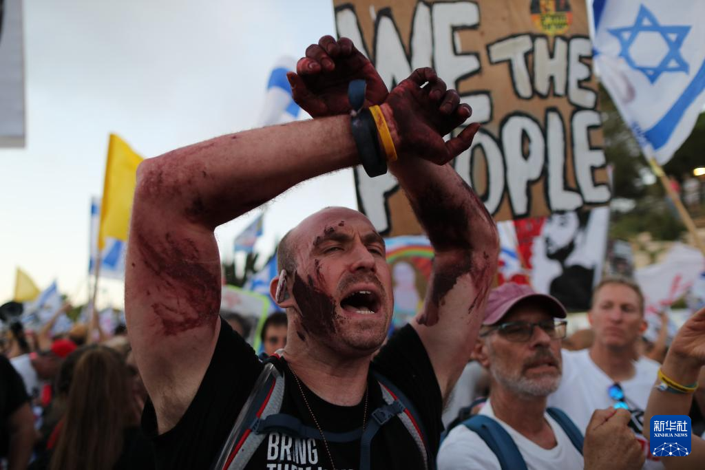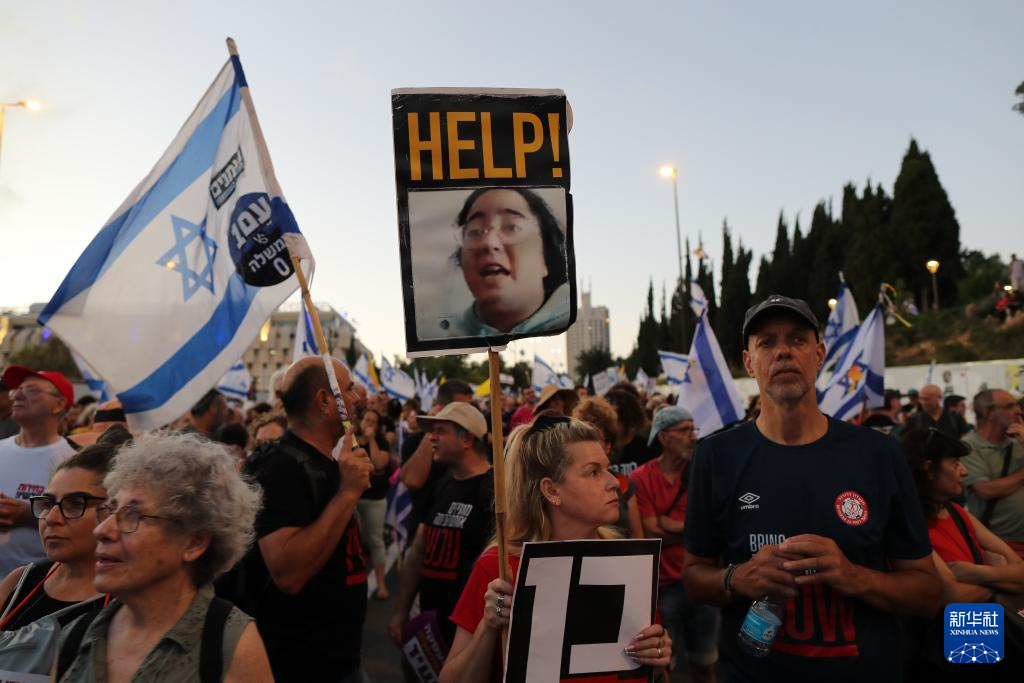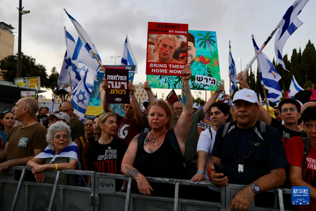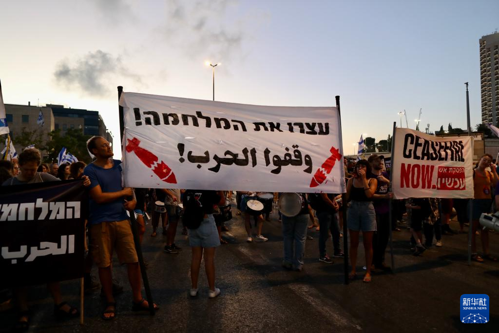 7月13日,民众在耶路撒冷举行集会,要求以色列政府在加沙地带停火止战,与巴勒斯坦伊斯兰抵抗运动(哈马斯)达成协议,促使被扣押人员尽快得到释放。