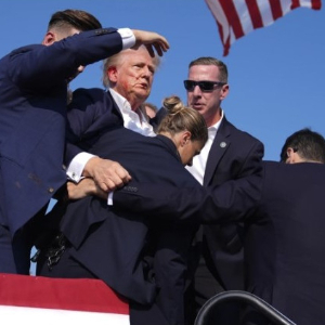 据美国媒体13日报道,美国前总统特朗普当天在宾夕法尼亚州巴特勒市举行的竞选集会现场发生枪击事件,特朗普被特勤局人员护送离开。