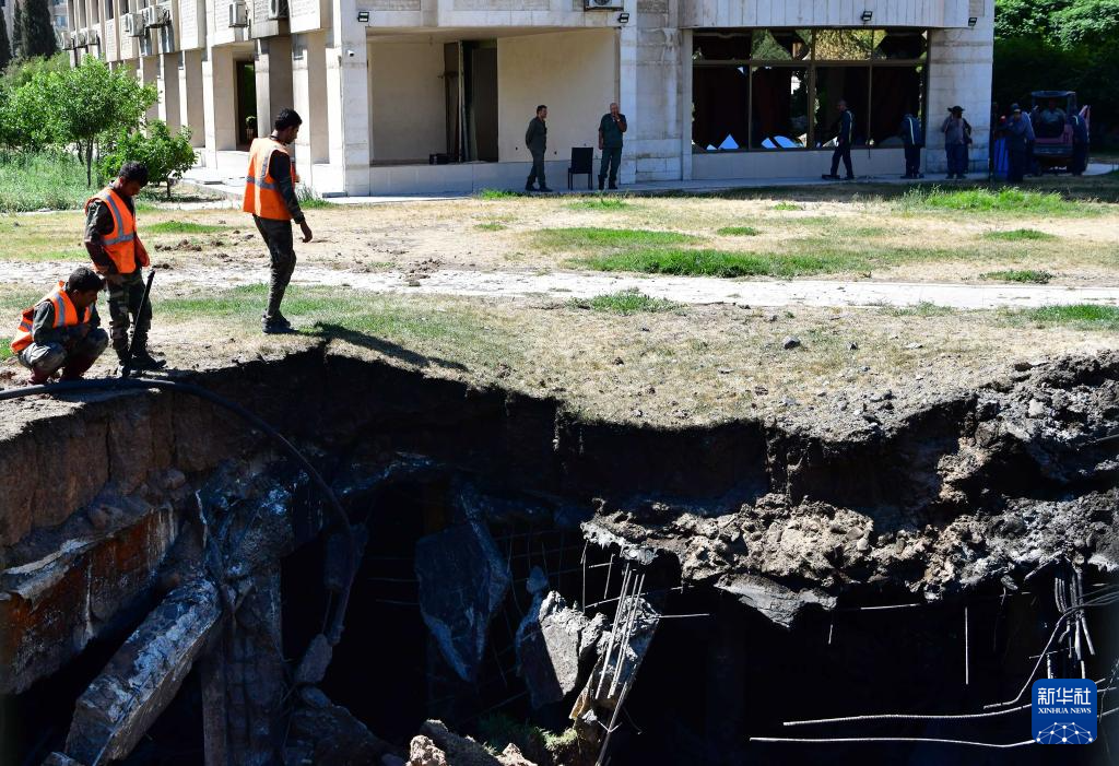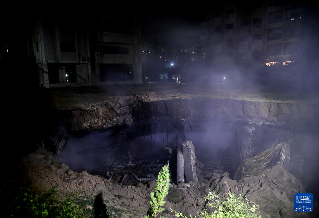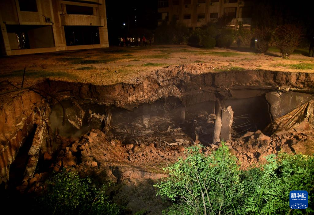 这是7月14日凌晨在叙利亚首都大马士革拍摄的一处遭以军空袭现场。