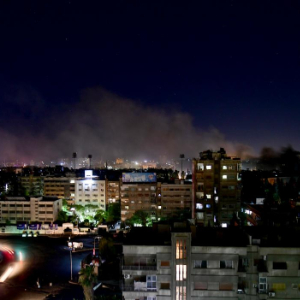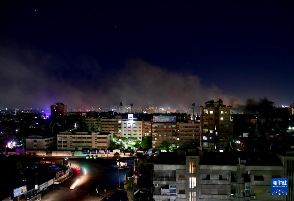 7月14日凌晨,叙利亚首都大马士革遭以色列导弹袭击的地区升起浓烟。