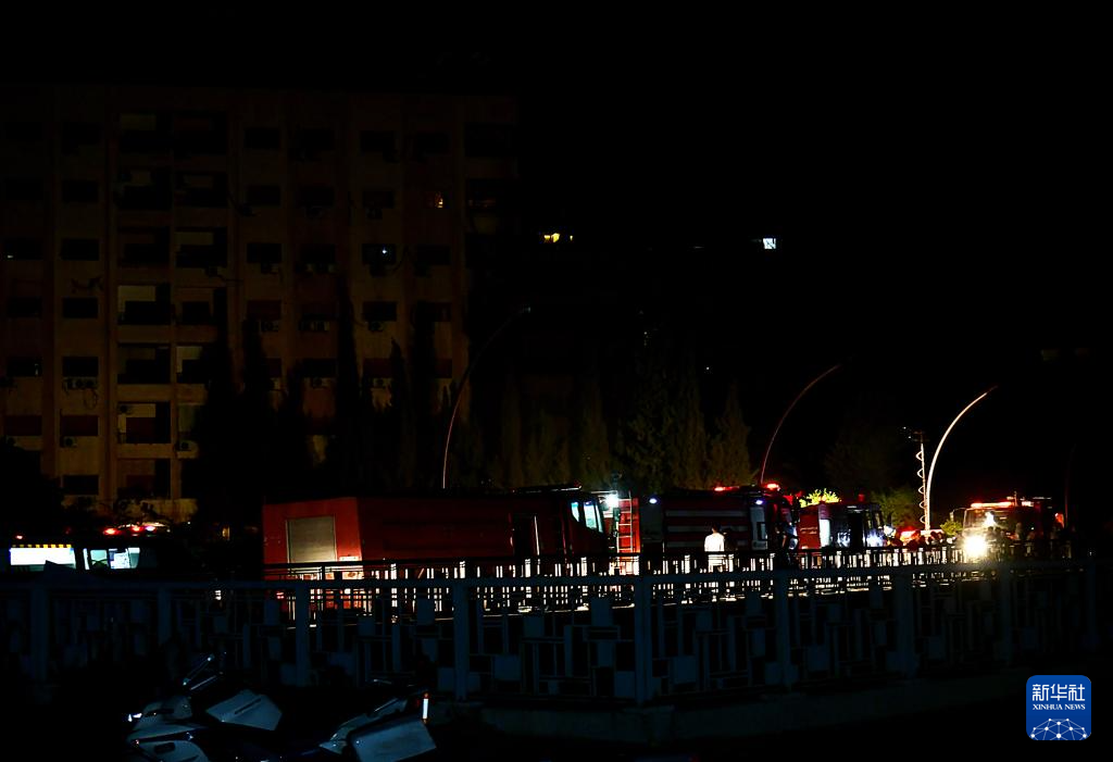 7月14日凌晨,救援车辆在以军空袭后聚集在叙利亚首都大马士革街头。
