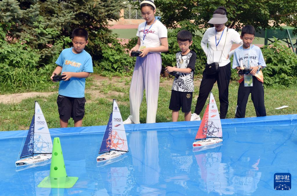 7月14日,在2024年黑龙江省模型系列锦标赛中,参赛学生在进行帆船绕标比赛。