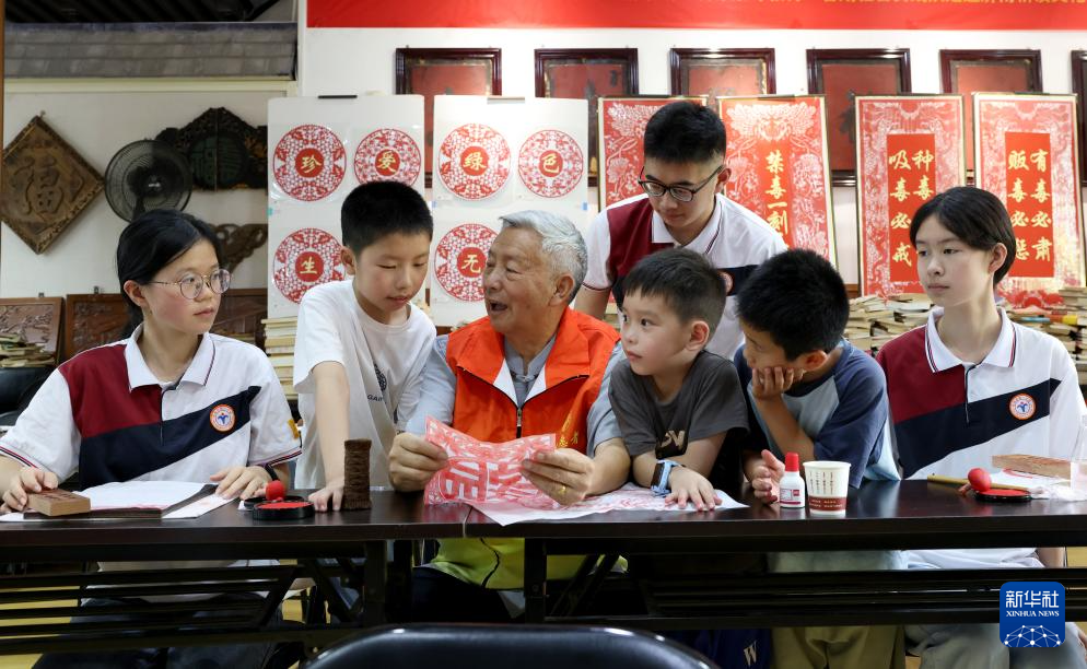 7月14日,在福建省宁德市屏南县耕读文化博物馆非遗拓片技艺传习所,学生们在授课老师的带领下,学习非遗拓片技艺制作。