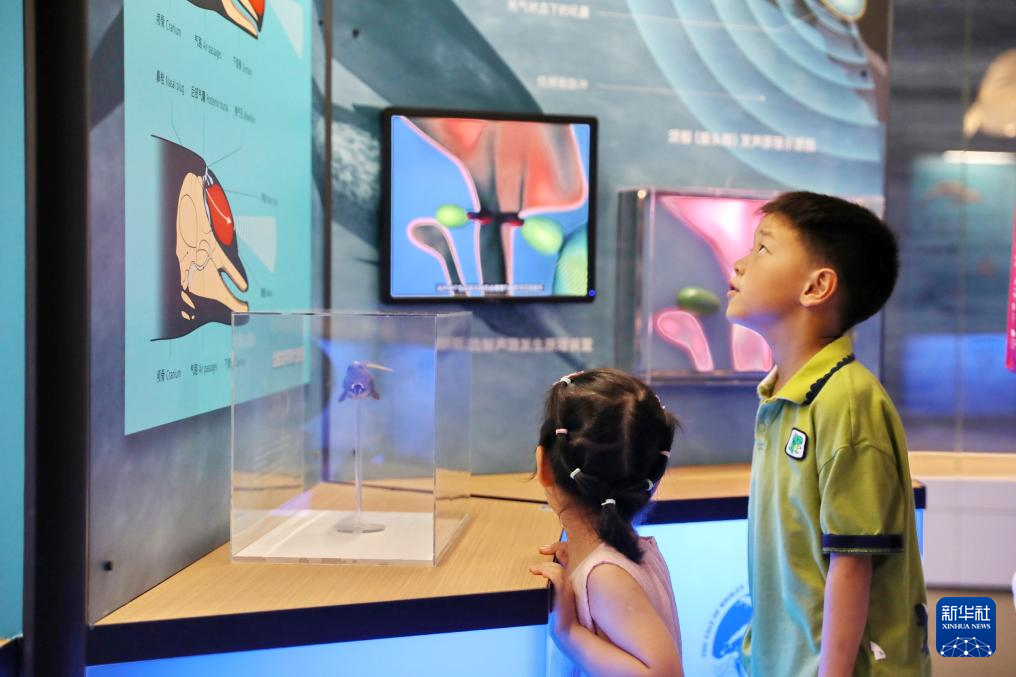 7月14日,小朋友在浙江省嘉兴马家浜文化博物馆参观展览。