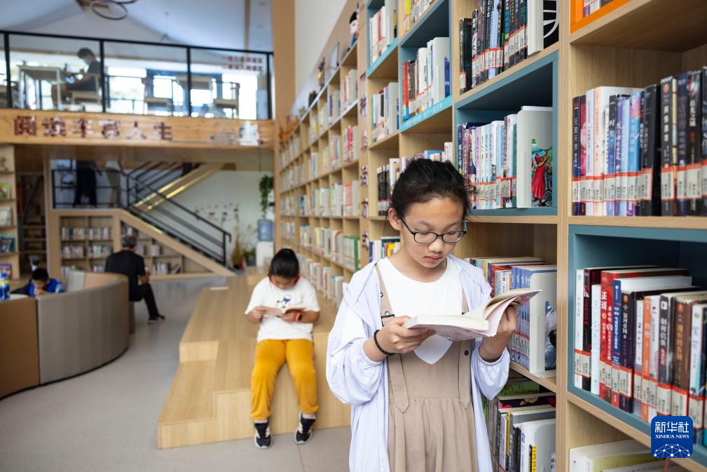 7月14日,小朋友在山东省东营市广饶县的一处城市书房阅读。