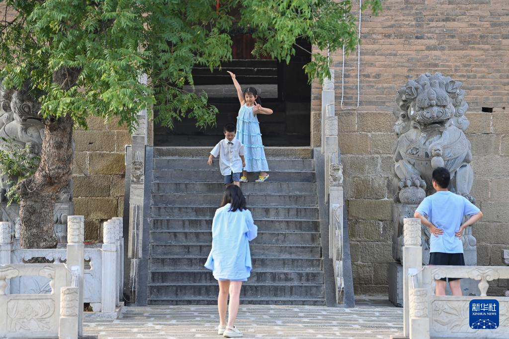 游客在湘峪古堡内拍照(7月11日摄)。