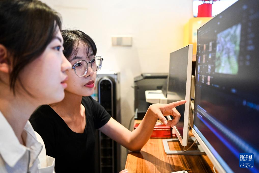 7月10日,在大寨村“山中已千年”观景民宿,两名刚毕业的大学生应聘到此工作,为民宿剪辑宣传视频。