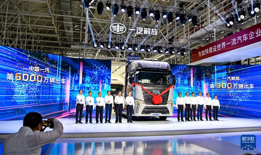7月16日,中国一汽第6000万辆汽车暨第900万辆解放牌卡车驶下生产线。