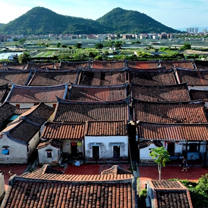 埭美村古厝采用木架结构利于防震,屋檐以闽南特色的红砖燕尾脊为主(7月10日摄)。