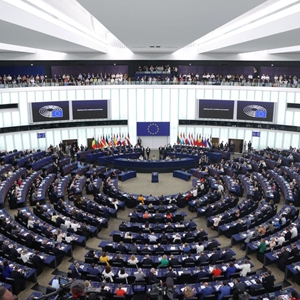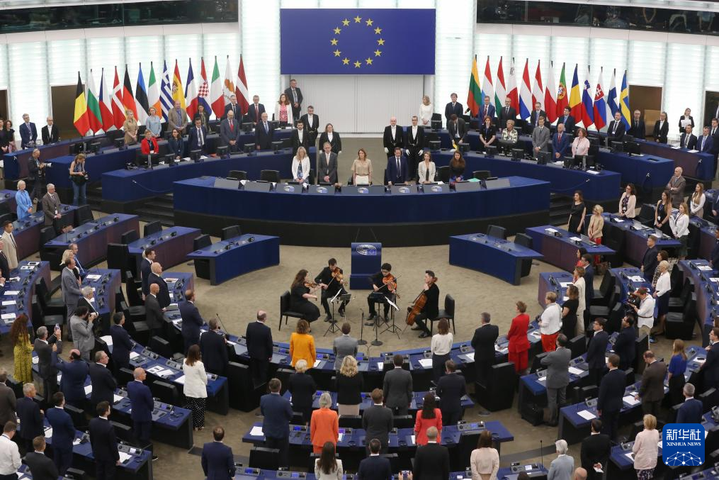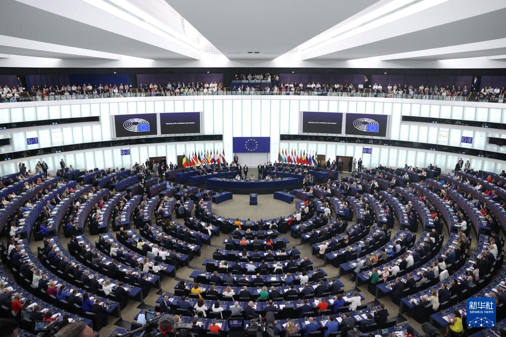 这是7月16日在法国斯特拉斯堡拍摄的新一届欧洲议会第一次全体会议现场。