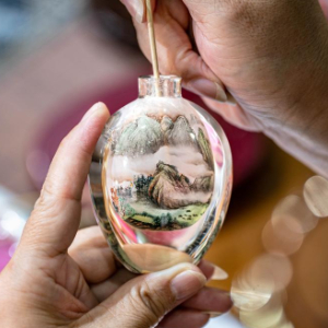 内画是我国特有的传统工艺。画师把特制的画笔,伸入狭窄的瓶口反向绘画,将大千世界镶嵌于方寸之间。“滇派内画”是现代内画技艺中一种独具云南风情的派别。