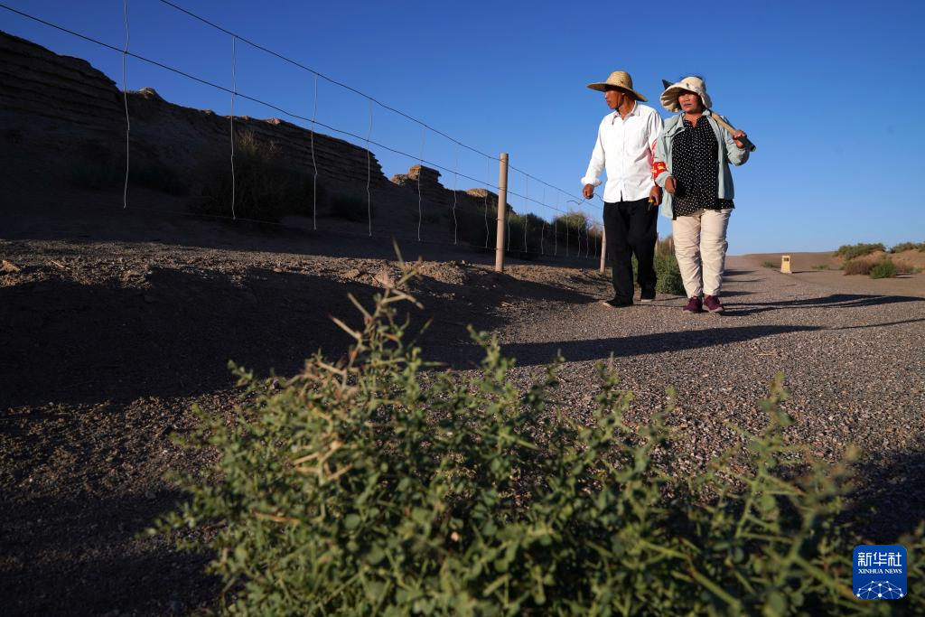 后来,得益于敦煌加强文保力量,他的妻子闻春瑜也成为一名文保员。从此,他们夫妻二人便扎根大漠,像古代戍边战士一样守护长城。他们在房前屋后种下白杨树,浇灌出一片菜园,为生活增添点点绿意与希望。