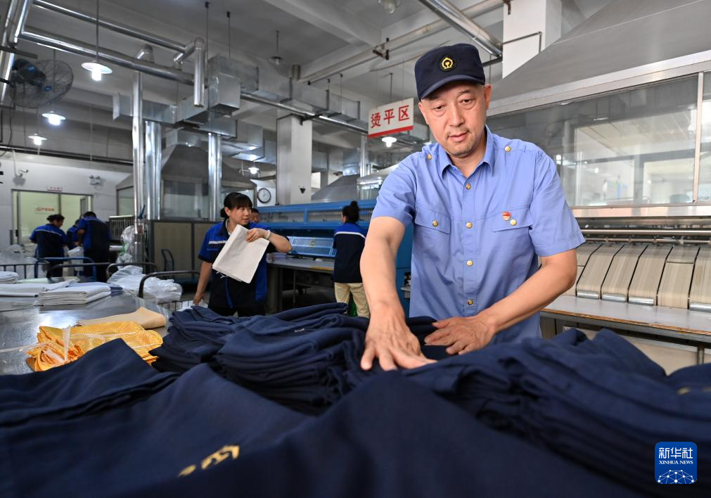 7月17日,工作人员在整理毛毯。