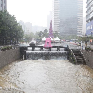 7月18日,韩国首尔的清溪川由于涨水实行封闭管理。