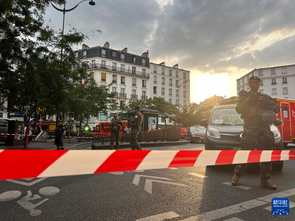 7月17日,警察和士兵在法国巴黎出事的咖啡馆附近警戒(手机拍摄)。