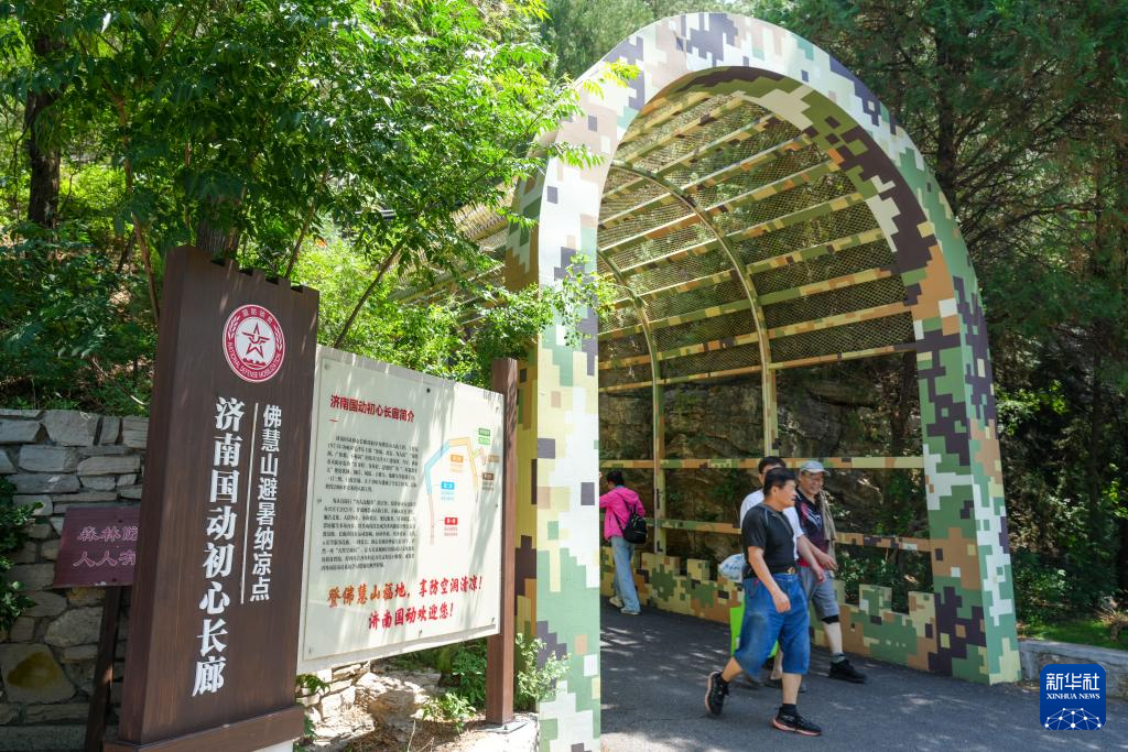 7月18日,居民出入济南佛慧山避暑纳凉点。