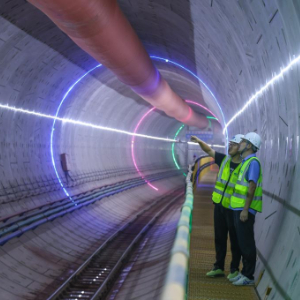 7月18日,芳白城际六工区项目管理人员在检查隧道建设质量。