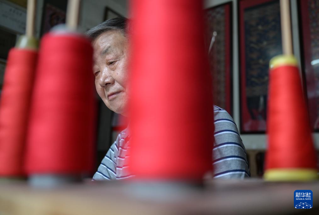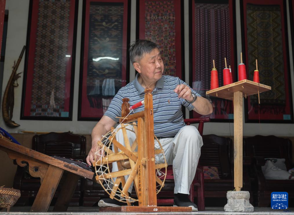 7月3日,湖北省来凤县桂花树社区,唐洪祥在纺线。